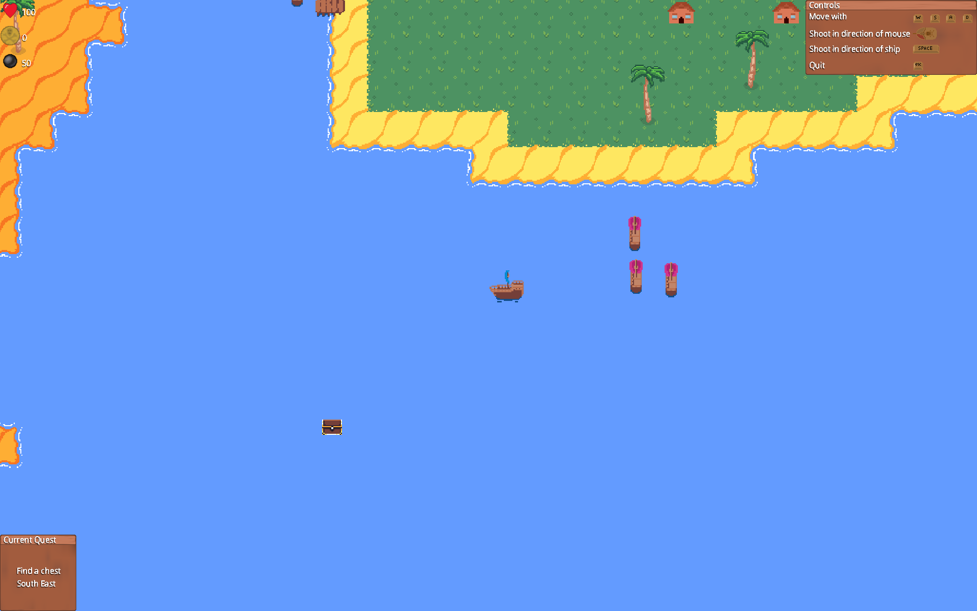 You use WASD keys to control the direction of the ship. The cannonball can be fired in the direction of the mouse with a left click, or in the direction of the ship with the spacebar.